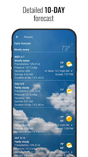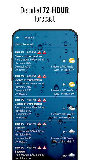 - Hourly details: In this application, you will be able to access extremely detailed weather information for each hour. Bringing you extremely accurate and complete forecasts that no other application can provide.