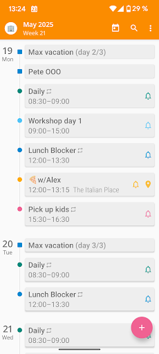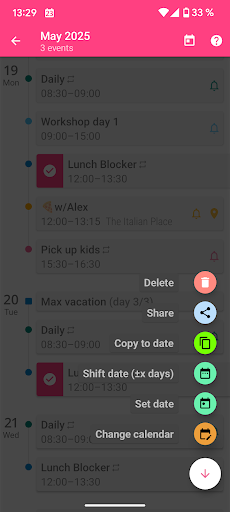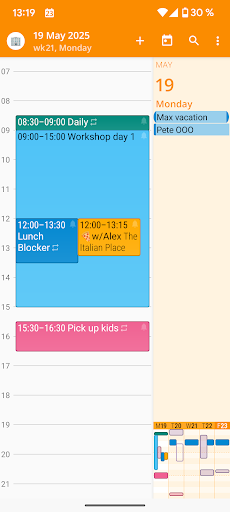 Excellent what is added to the application event is automatically duplicated in the standard device calendar. It is a kind of safety net: if aCalendar will fail, not one important meeting not to be missed. Plan your day and remember about important events with the calendar.