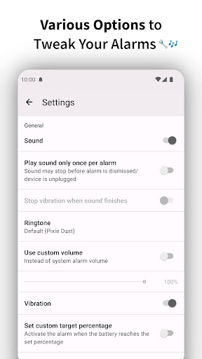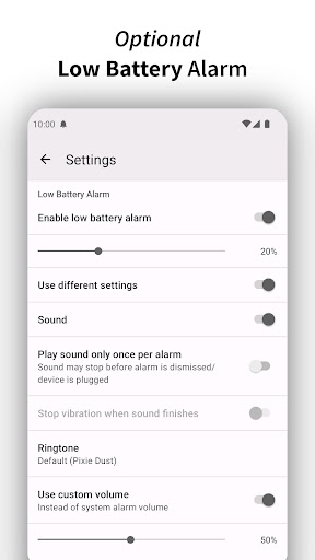 Improper battery charging can also affect the battery life and the performance of the device. Full Battery Charge Alarm is created with the function of monitoring the battery level and giving necessary warnings to users. They will know when the phone is fully charged to unplug the charger or vice versa.